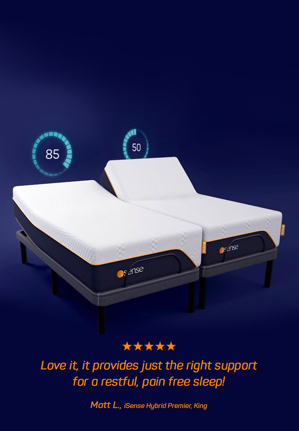 With endless head and foot positions, twenty comfort settings and consistent pressure relief, only iSense beds adapt to create your best sleep environment night after night, year after year.
