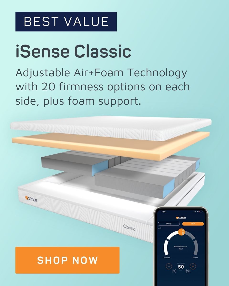 The iSense Classic has a slightly firmer range of feel. The soft setting of 10 and the firm setting of 100 is slightly firmer than the iSense Hybrid Smart Bed.