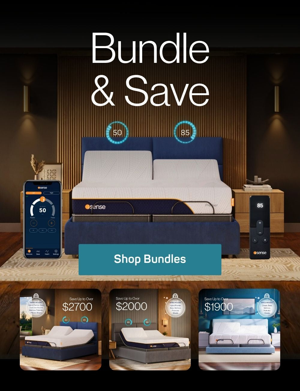 Track your sleep and adjust your mattress firmness and position with the remote or your smart phone with the iSense app.