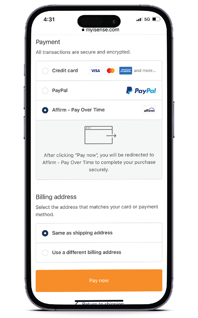 Select “Affirm” as your payment method. Enter a few pieces of information to determine your eligibility. Receive instant notification of a loan decision.