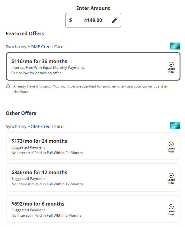Synchrony offers promotional financing options, which may include: