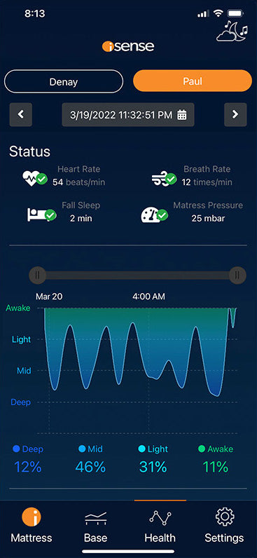 Each iSense Hybrid Premier mattress is built with a biometric sensor which tracks only the essentials: duration, heart rate, respiration and movement. We believe sleep data is only helpful when it is easy to understand and to apply for your health. That is why we keep our data points simple, only including the most critical numbers and nothing more.