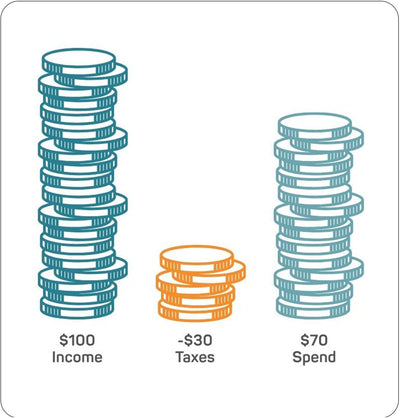 *On average, 30% of gross income is paid to state and federal tax. Individual tax rates vary.