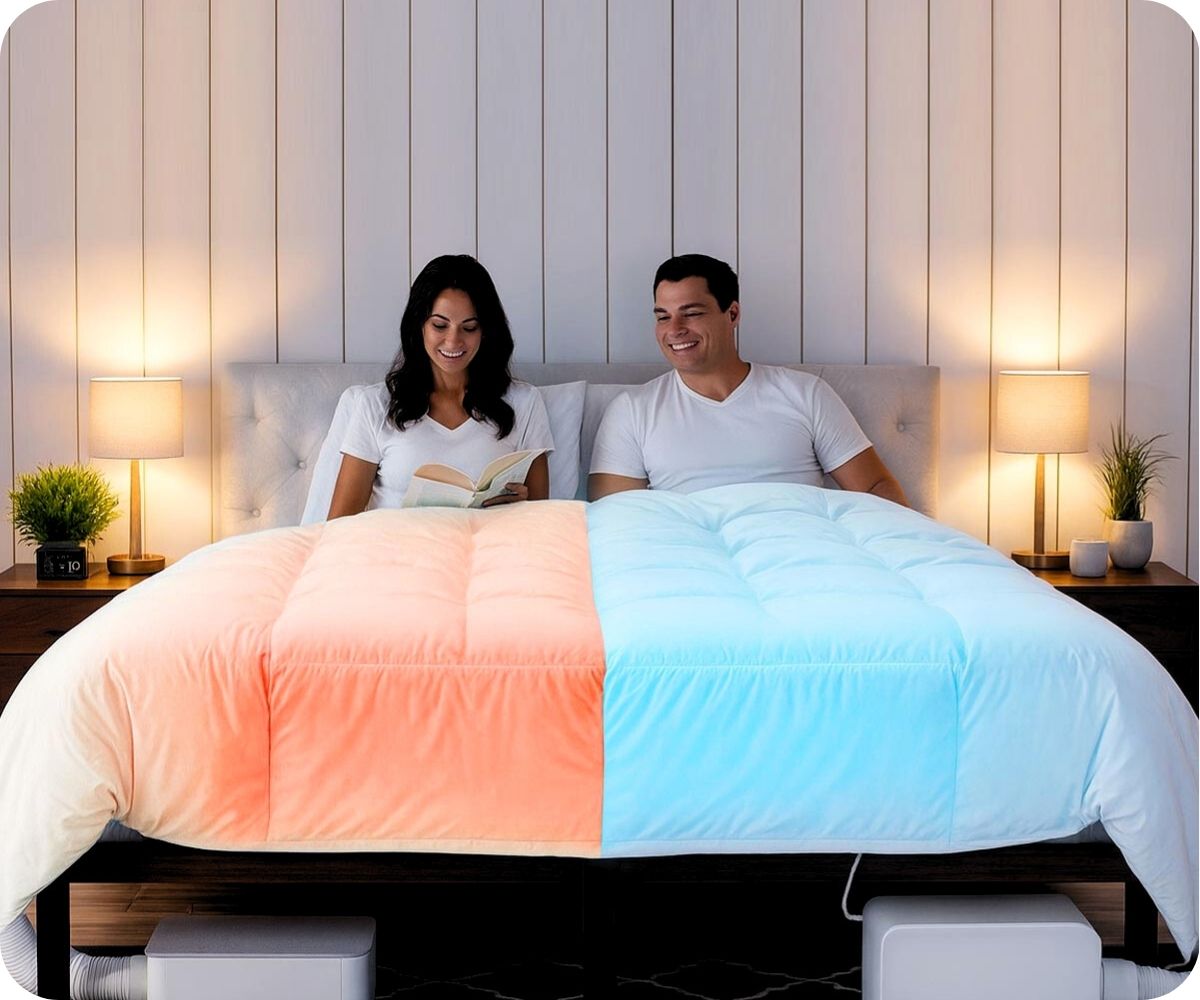 Set your own temperature on each side of the bed for personalized climate control all night long. Whether you prefer a cool breeze or cozy warmth, the Dual Zone BedJet maintains your ideal comfort level without affecting your partner. Its quiet, precise airflow technology helps regulate body temperature, reduce night sweats, and create the perfect sleep environment for both of you.